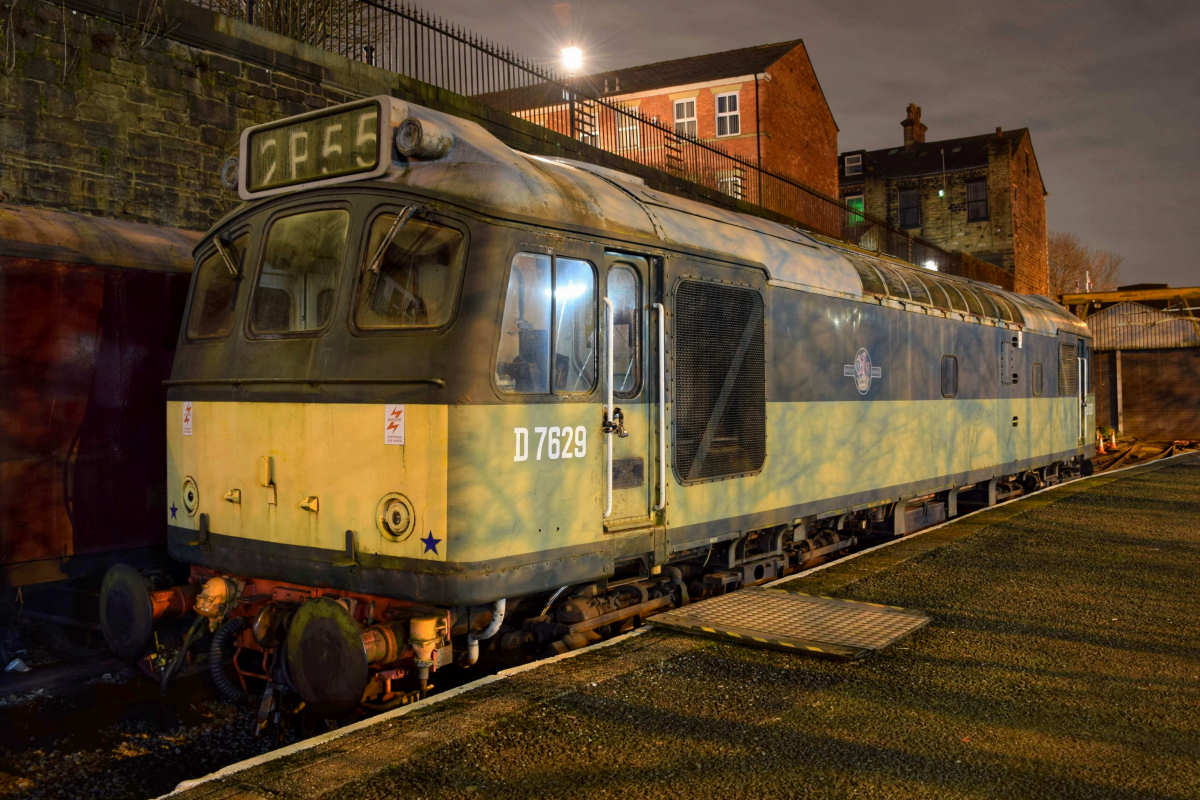 D7629 was sold privately to Mark Fowler, who remains the current owner, being moved to the GCR at Loughborough by road in the last week of June 2000. Extensive restoration took place at Rothley and the loco was fired up during March 2001 but it still suffered from a number of minor problems which left it confined to yards only. However by the middle of June 2001 enough had been fixed to permit a test run on June 20th that would reach beyond the confines of Rothley yard. Road tests were completed with 47117 and proved successful. D7629's GCR passebger debut was on July 14 but sadly the turbocharger seized and the loco returned to Rothley shed the next day. Repairs were made in time for D7629 to appear at the July 2001 GCR Diesel Gala.